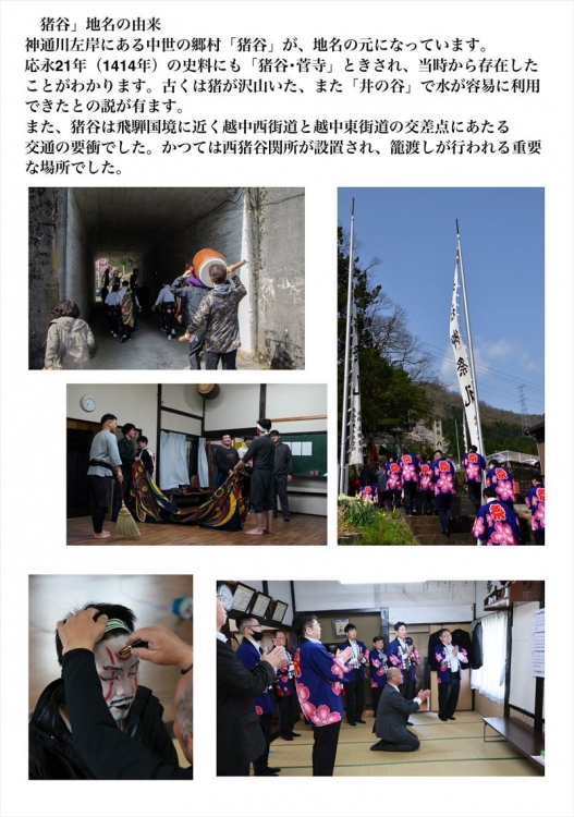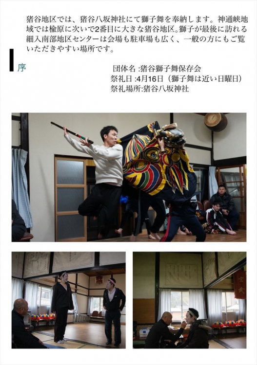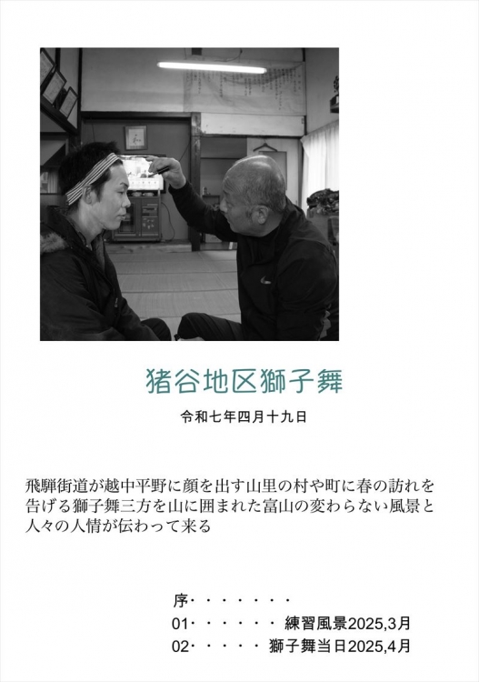 昨年に引き続き北陸富山市細入地区5ヶ所の春の獅子舞を練習から本番まで神通峡撮影し隊 with AMAZING TOYAMA写真部のメンバーが地域の方々の協力のもと撮影しました。飛騨から越中の平野に入る国道41号線が横断する各地区の獅子舞です。今回は、地域の皆さまのご要望でそれぞれの地区を分けて編集しました。どうぞ細入地区に伝承された特徴の有るそして未来に繋がる人々の暮らしをご覧くださいませ。