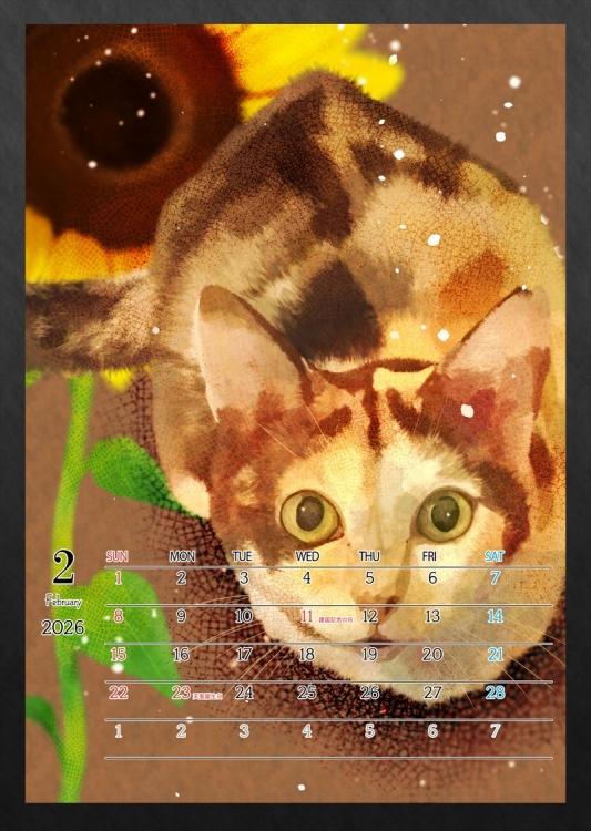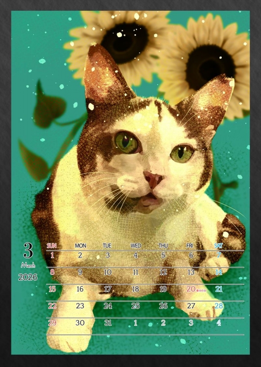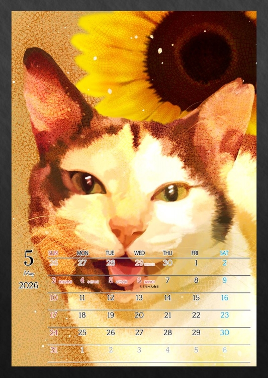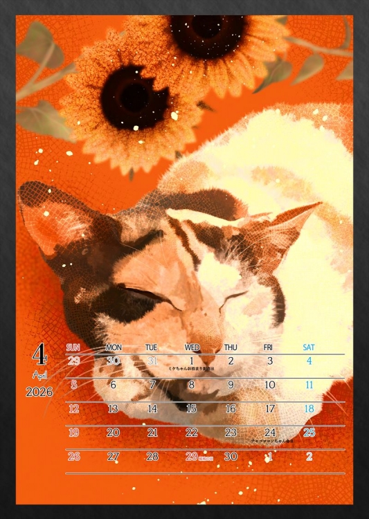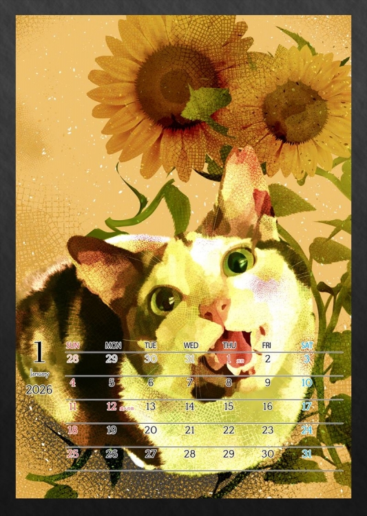 ミケちゃんの心にはいつも明るいひまわりが咲いています。その想いを背景にそっと描いた優しくて可愛いミケちゃんの魅力がたっぷりのカレンダーです!ひまわりのように笑顔をくれるミケちゃんが毎月あなたの心をふんわり照らします!壁掛けタイプでお部屋にもアクセントになりプレゼントにもぴったりです!