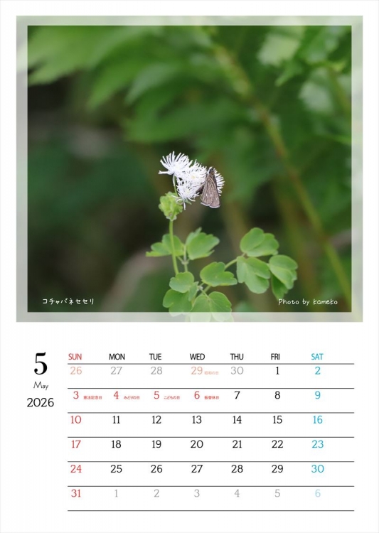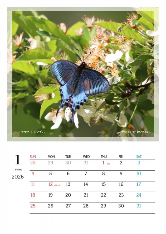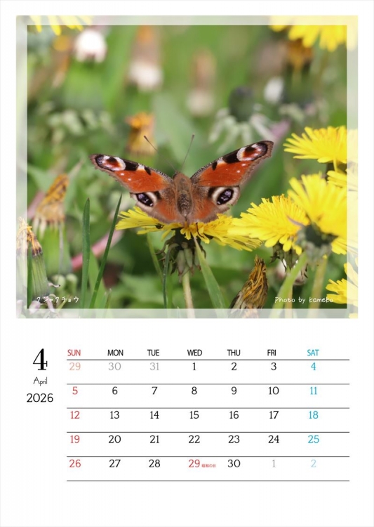 初夏の北海道で出会える12種類の蝶を、美しい写真で楽しめるカレンダーです。遊歩道の花や緑の葉にそっととまり、地面で羽を休め、川や湿地で水を飲む…。自然の中で生き生きと舞う蝶たちの一瞬一瞬を、12か月にわたってお届けします。ページをめくるたびに、日常に小さな癒しとワクワクを。お部屋やオフィスにそっと自然の彩りを添える一冊です。